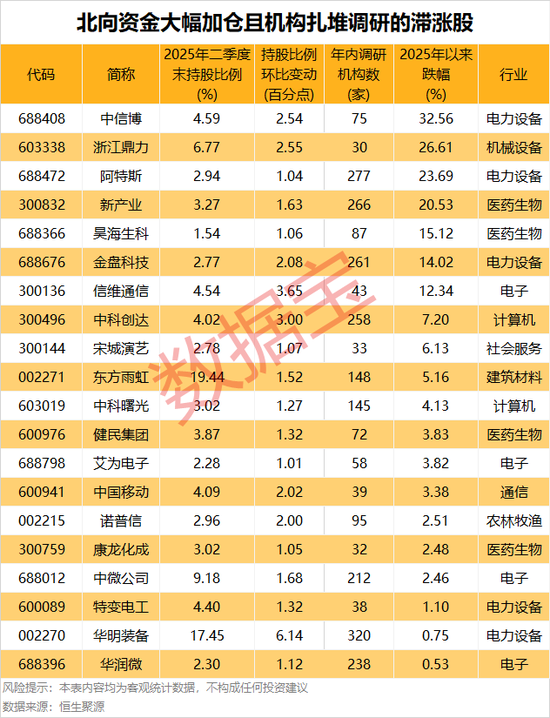 进一步来看,上述168只获北向资金环比加仓超1个百分点的陆股通成份股中,甩掉7月8日,年内获30家及以上机构调研,且本年以来股价着落的个股有20只。比较沪深300指数年内1.61%的涨幅,这20股属于滞涨的气象。
